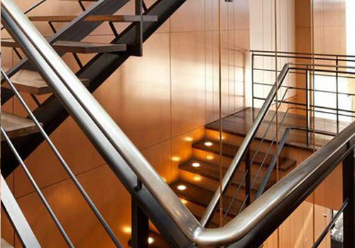 簡約美觀的不鏽鋼商場樓梯扶手例,展示了整個商場的優雅氣息和簡約風格。此外(wài),有些(xiē)躍層戶型,也(yě)有客戶(hù)使用不鏽鋼樓梯踏步板,結構安全,漂亮美觀。